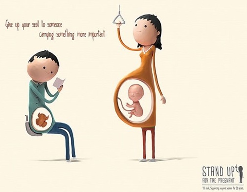 Todos los días, a cualquier hora, embarazadas de pie en el metro autobus, cualquier lugar. «Gente» mirando para otro sitio para no dejarla sentar ni siquiera en los sitios especializados para ella. Os invitamos a denunciar, obligar a esta «gente» a que se levanten.