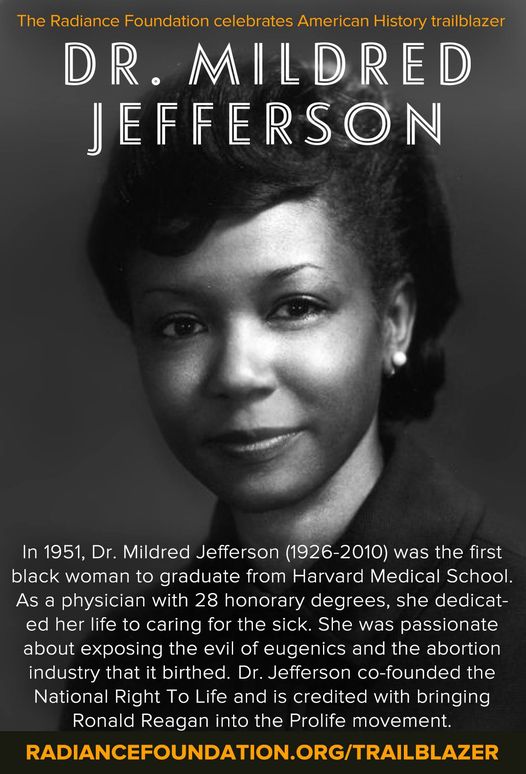 Mildred Jefferson encarnó durante sus 83 años de vida cómo el debate que plantean del aborto y esclavitud es idéntico y sólo puede ser resuelto con el mismo criterio moral. Jefferson creció en la Texas segregacionista, pero con tenacidad se convirtió en la primera afroamericana graduada en medicina por Harvard y la primera mujer de la Sociedad de Cirugía de Boston. Fundó también la Comisión Nacional por el Derecho a la Vida, principal organización pro-vida norteamericana. Jefferson pasó su vida combatiendo.
