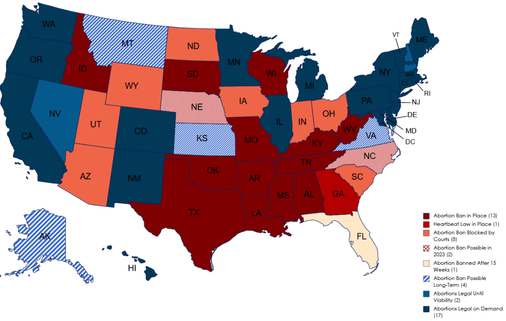 Estados como: Arizona, Indiana, Iowa, Ohio, Carolina del Sur, Dakota del Norte, Utah y Wyoming están luchando en los tribunales para proteger sus prohibiciones de aborto para que los bebés puedan salvarse. Prohibiciones después y antes de la sentencia ROE v WADE: Alabama, Arkansas, Georgia, Idaho, Kentucky, Luisiana, Mississippi, Missouri, Oklahoma (anterior a la sentencia del DOBBS) , Dakota del Sur, Tennesse, Texas, Virginia Occidental, y Wisconsin (anterior a la sentencia del DOBBS).