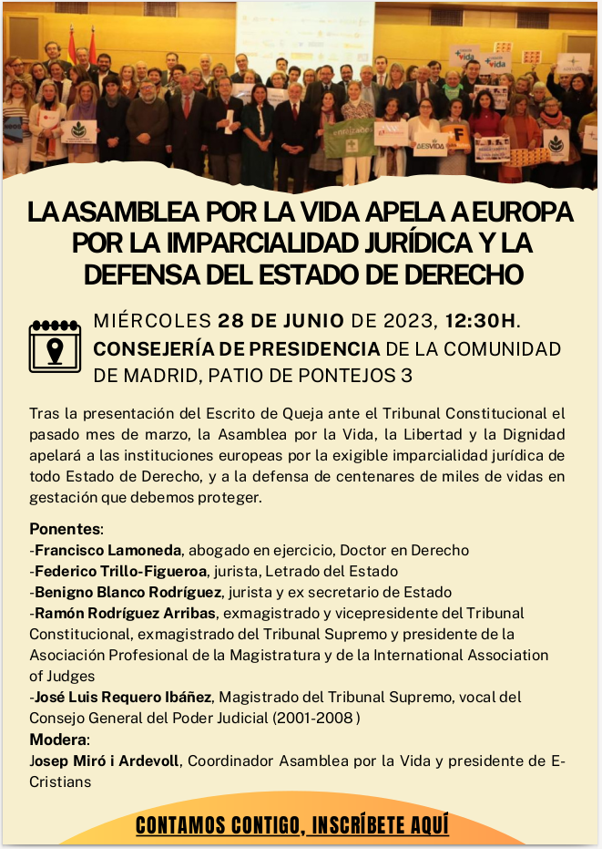 En calidad de secretario de la Asociación MásFuturo y de los Rescatadores Juan Pablo II estaré presente en esta convocatoria con el ánimo de que las leyes inicuas que nuestro Tribunal Constitucional está refrendando no acaben por conseguir que se desmorone nuestra sociedad y con ella sus ciudadanos, cuando sostienen que se pueden ignorar los más elementales principios morales.