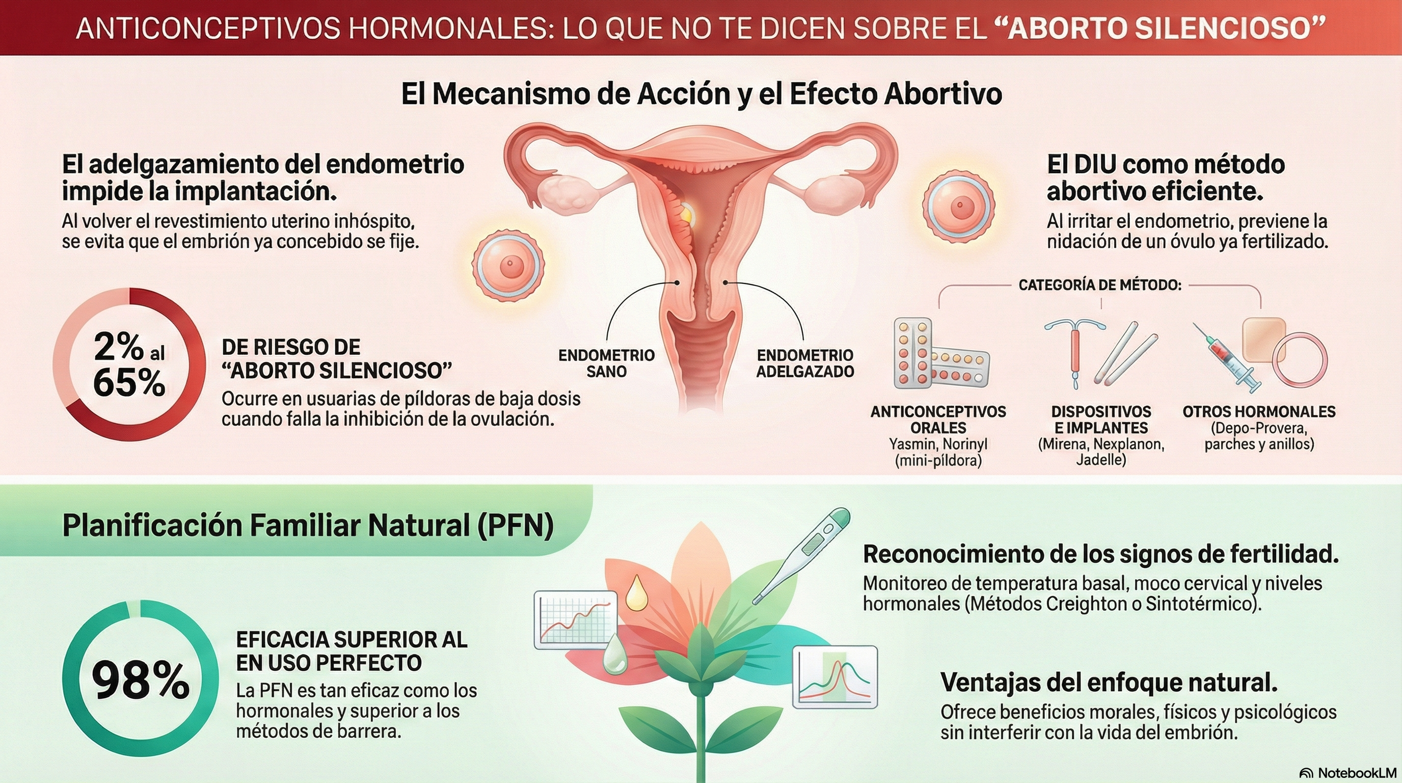 Frente a la intervención química o mecánica que altera la integridad del sistema reproductivo, surge la Planificación Familiar Natural (PFN) no como un recuerdo del pasado, sino como una alternativa de precisión científica . Estos métodos, como el Sistema Creighton FertilityCare™, el Método Sintotérmico o el Modelo Marquette, se basan en el monitoreo riguroso de señales biológicas —temperatura basal, moco cervical y niveles hormonales— para identificar con exactitud la ventana fértil.