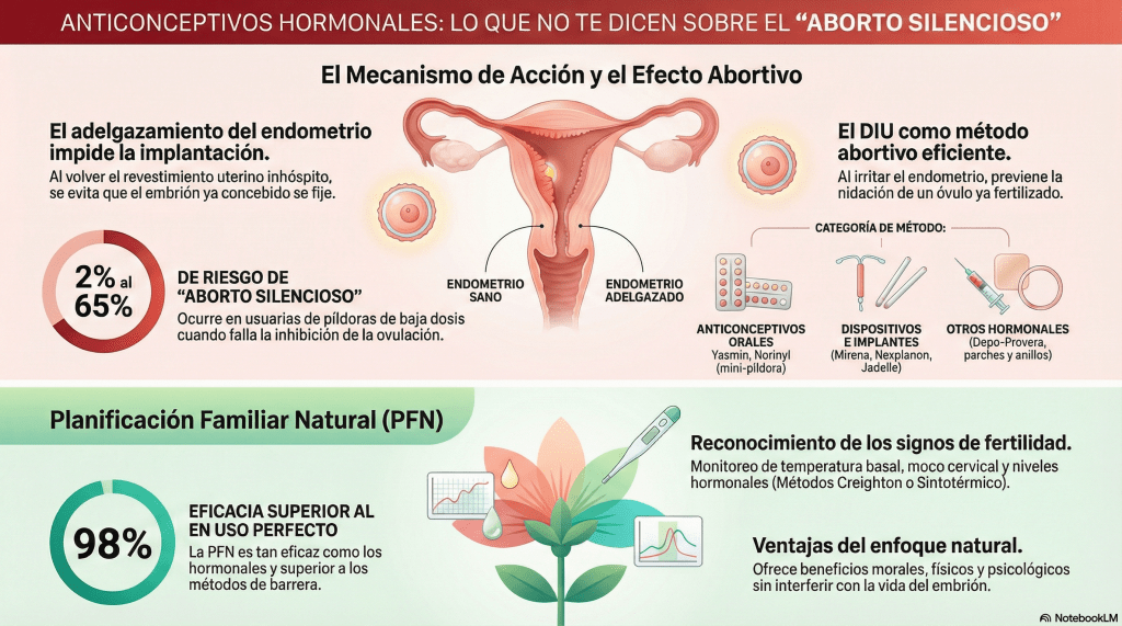 El término «aborto silencioso» captura la esencia de este drama biológico: la pérdida de un ser humano embrionario que ocurre de forma imperceptible, sin que la madre llegue a saber que la concepción tuvo lugar. Es una interrupción de la vida que se produce no por el fracaso del método, sino como parte de su diseño técnico para asegurar que no se detecte un embarazo clínico.