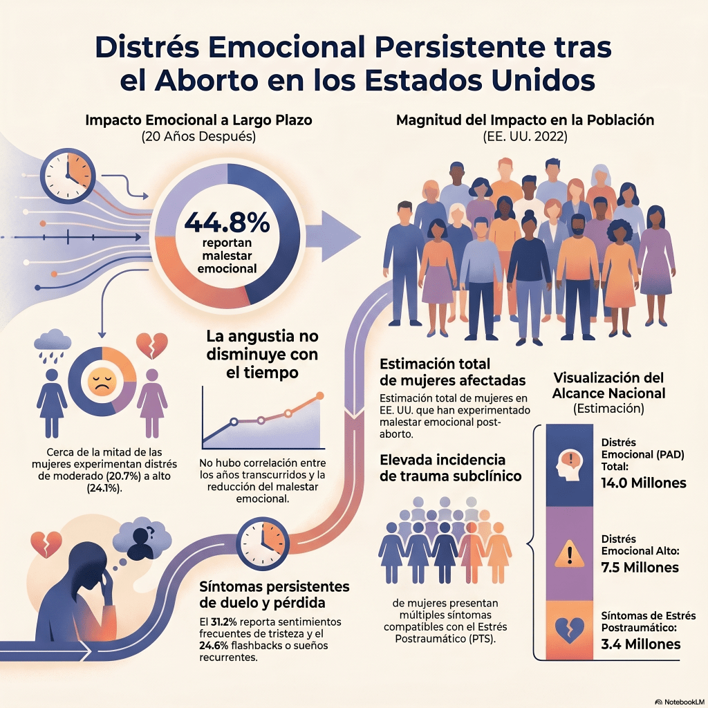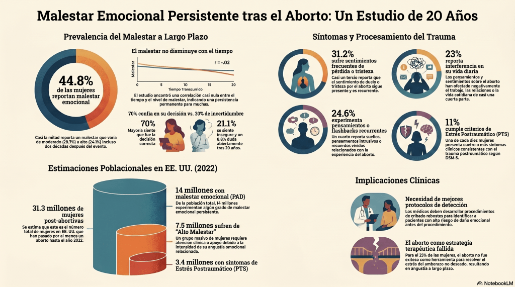 En el ámbito de la salud reproductiva, solemos asumir que cualquier malestar emocional tras un aborto se disipa en un periodo de cinco años. Sin embargo, para comprender la profundidad de este impacto, es necesario desglosar los datos que millones de mujeres han llevado en silencio. Una investigación reciente liderada por el Dr. D. Paul Sullins publicada en la revista Int J Women’s Health Care (2025) arroja una luz reveladora sobre esta realidad. Al estudiar a mujeres de entre 41 y 45 años —que se encuentran al final de sus años reproductivos—, el estudio permite observar los efectos del aborto con una perspectiva promedio de 20 años, desafiando las narrativas convencionales sobre la recuperación emocional.